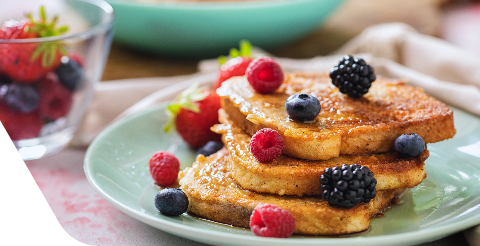 Suggestion: Mangez votre pain doré avec du sucre en poudre, de la cannelle, du sirop d'érable, de la confiture, de la crème fouettée ou des fruits. Utilisez des emporte-pièce pour créer des formes amusantes. Garnissez des fruits préférés de votre tout-petit.